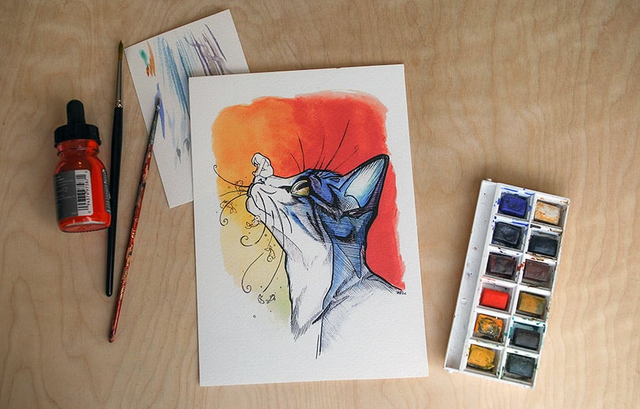 One of my oldest pieces of artwork, this was a rainbow idea dreamed up over a new year in 2015/16 for my first exhibition. It is still very dear to me as an artist and the colourful prints of this picture have long been pinned to my wall, so sharing them with others to have whimsy whiskers brighten up their wall too.